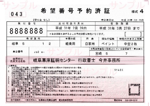 ちなみに前日には岐阜ナンバーへの自動車登録・岐阜ナンバーへの軽自動車登録、岐阜県各警察署への車庫証明の準備は完了しております。